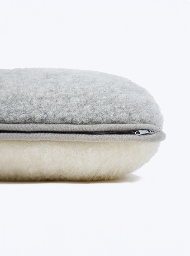 Wodurch zeichnet sich das Wollkissen Merino hellgrau aus?