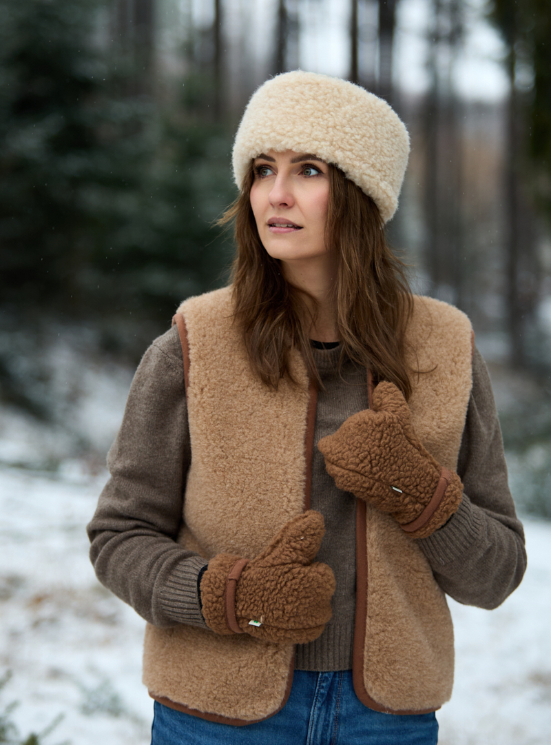 You can wear the vest all year round, because thanks to its thermoregulatory properties it maintains thermal comfort in any conditions. It is light and breathable, while still providing warmth during a walk, at work, or while relaxing after training. Its brown colour highlights natural elegance and suits both boho and casual styles.