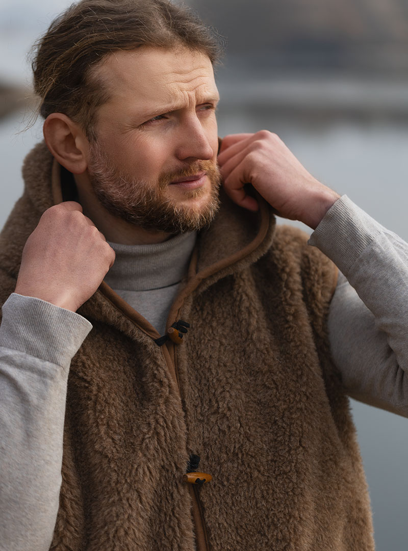 Luksusowe ciepło, które otula i regeneruje. Kamizelka wełniana męska z wełny alpaki zapewnia wyjątkowy komfort i naturalne wsparcie dla pleców oraz mięśni. Miękka, puszysta struktura alpaki nie gryzie, oddycha i utrzymuje optymalną temperaturę, dzięki czemu możesz cieszyć się ciepłem i swobodą ruchów przez cały dzień.