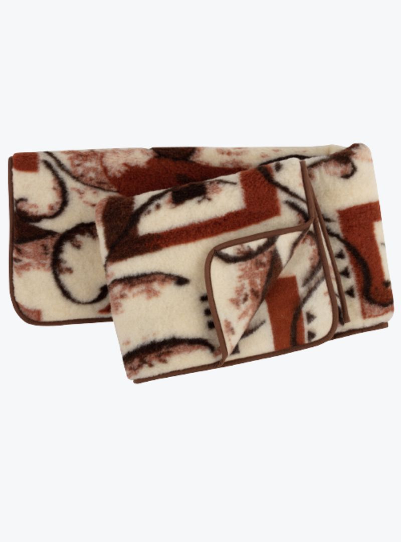 Beżowy koc z brązowym wzorem na neutralnym tle