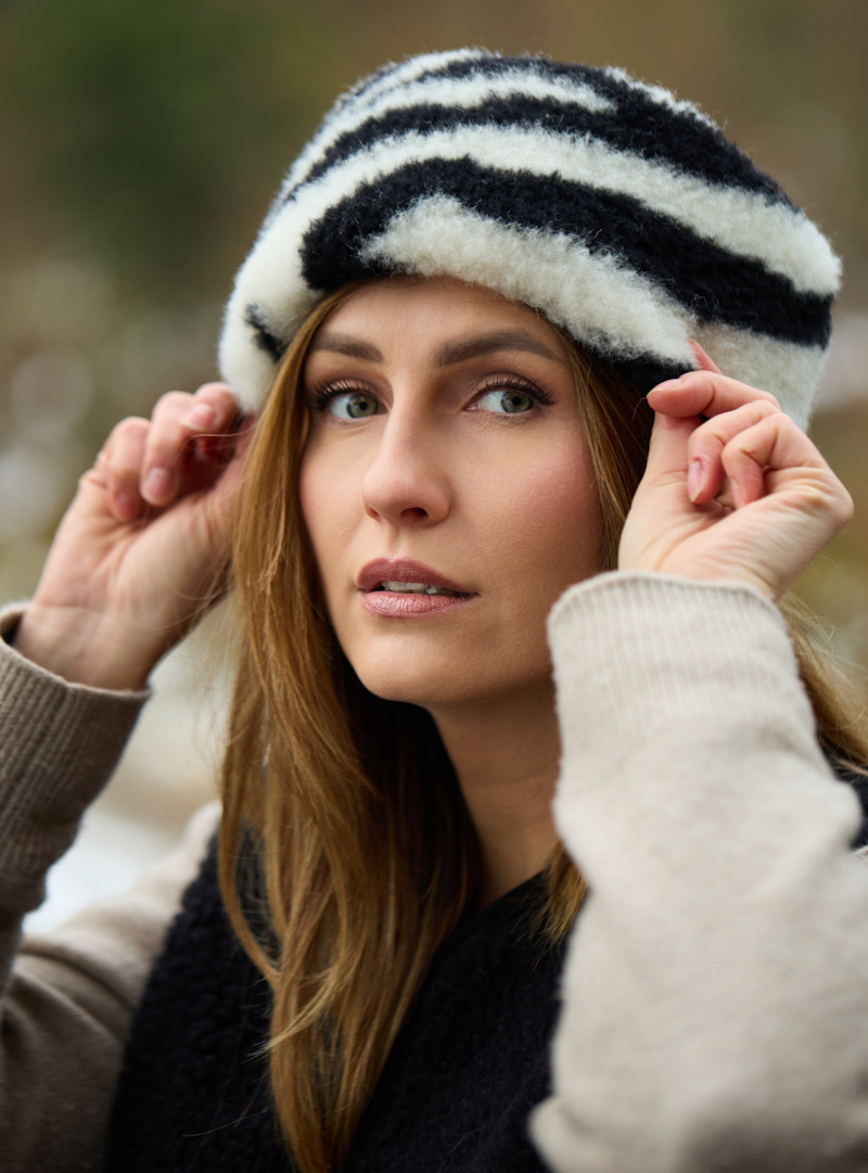 Wełniana opaska na głowę zebra